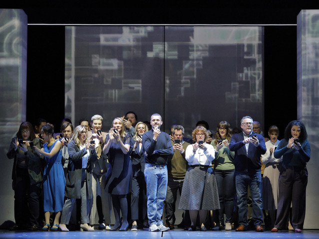 24 Mitglieder des San Francisco Opera Chorus unter John Keene geben mit viel Spielfreude vor allem den Angestellten in Jobs Firma Stimme und darstellerischen Ausdruck.