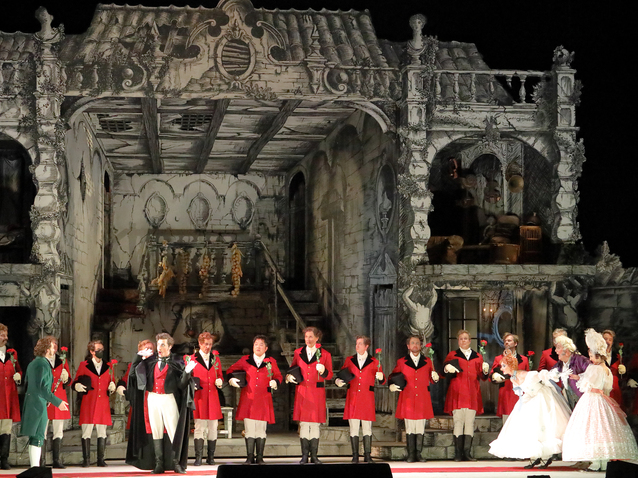 Über 300 Inszenierungen und Ausstattungen schuf der 1988 durch einen tragischen Unfall verstorbene Regisseur Jean-Pierre Ponnelle. Seine phantasievollen Arbeiten fanden und finden großen Zuspruch beim internationalen Opernpublikum, so auch bei der aktuellen Wiederaufnahme seiner Inszenierung von Gioacchino Rissinis La Cenerentola aus 1980 an der Bayerischen Staatsoper. Dem barocken Bühnenaufbau mit einschiebbaren bemalten Bühnenbildern und gemalten Prospekt nachempfunden gestaltet er die Handlungsorte. Don Magnificos heruntergekommener Rokoko Pallazzo öffnet sich so und gibt Blicke in verschiedene Räume und die zentrale Küche frei, die Arbeitsstätte der von den Schwestern gequälten Cenerentola. Don Ramiros Pallazzo öffnet sich mit Blick in einen tiefen sich verjüngenden Ballsaal. Alle Bilder sind reich ausgestattet in schwarz weiß gehalten. Wie so oft gestaltete Ponnelle auch die bunten Kostüme, der Entstehungszeit des Werkes zu Beginn des 19. Jahrhunderts nachempfunden. Die Personenregie scheint seit 1980 an kollektiven Schwung verloren zu haben und wirkt von den Sängern, zumeist erstmals in den Rollen in München, individuell geprägt.