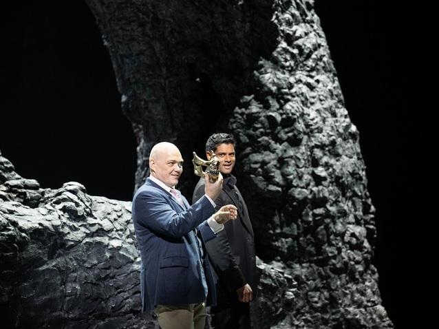 Das Rheingold is a difficult piece to stage because it entails ascents to the mountain outside Valhalla, and descents to Nibelheim, and there are no intervals in which scene changes can occur. One cannot therefore blame Kosky for keeping things simple by merely dropping the curtain in between each scene, so that all necessary alterations and manoeuvres can occur behind it. It still, however, feels like something of a cop out since the music in each instance suggests movement or a journey that ought to be replicated in the staging. This said, Alessandro Carletti’s illumination of the proscenium arch every time the curtain falls, so that the gold on it shines bright, is a nice touch. This is also a production that assumes some knowledge of the opera because, for those who lack any, it is unlikely to be obvious from just the words Alberich sings that he transforms into a huge dragon and then a tiny toad who is caught, when the former is no bigger than he is and the latter merely represented by a hand that is then grabbed.