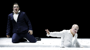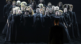 « I am the King », s’écrie un Saül pris de délire, conscient qu’il n’est plus pris au sérieux par ses sujets. Barrie Kosky donne la responsabilité de la cruauté au chœur, spectateur de la déchéance royale. Ce point de vue justifie à lui seul de découvrir la production, où le noir sur noir peut se parer de lumière.
