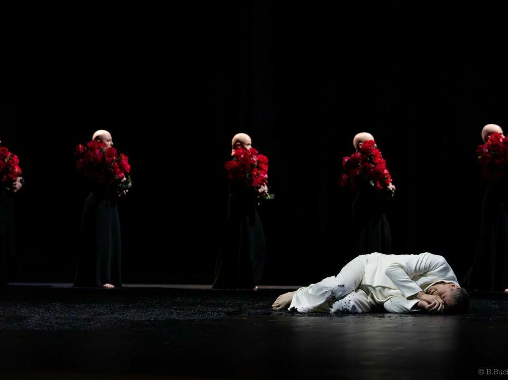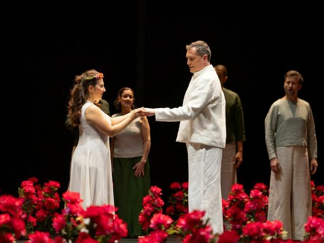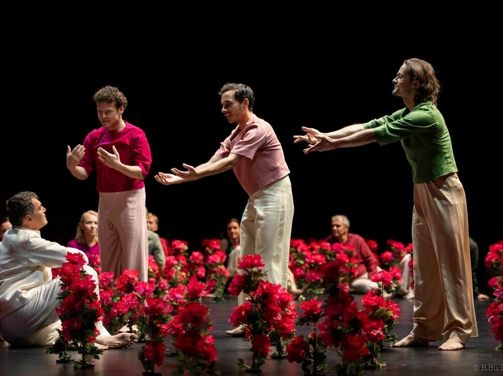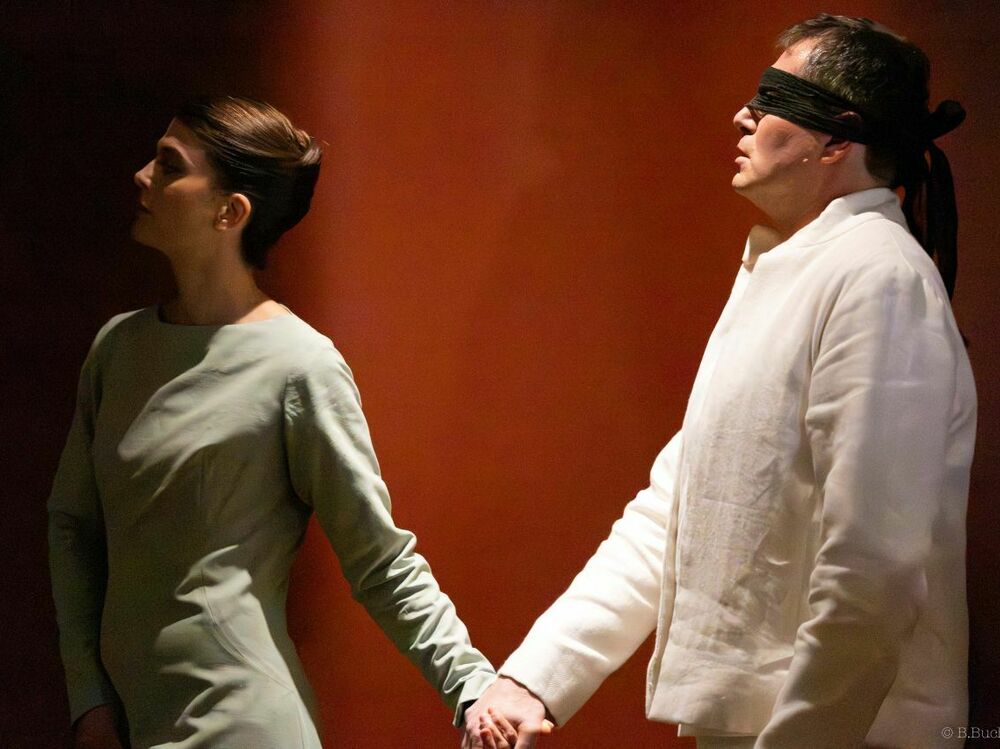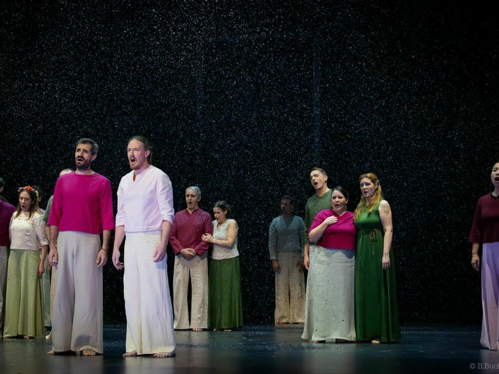 "Sous la direction de Pauline Bayle, cette fresque originelle prend des accents épurés, solennels et symbolistes. Rien d’inutile, tout est essentiel. L’espace scénique devient une terre de lumière et d’ombre, un lieu de métamorphoses où la voix, tantôt caresse et tantôt cri, se déploie dans toute sa splendeur. Un rituel intense, une célébration du chant humain – et du mystère qu’il porte en lui."